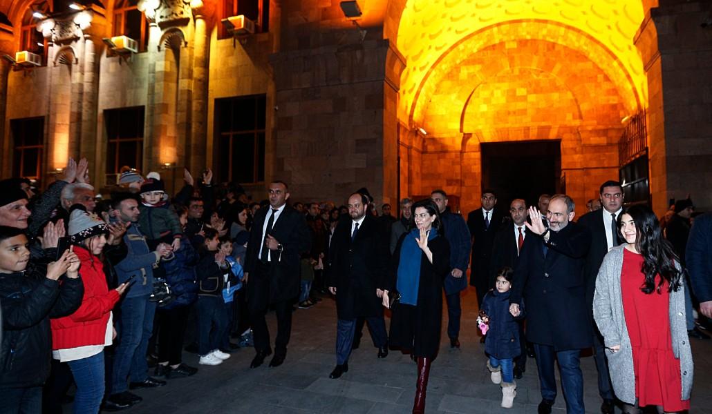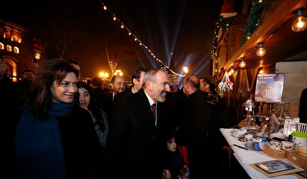 Փաշինյանը տիկնոջ եւ դուստրերի հետ շրջում է Ամանորյա տոնավաճառում (video)