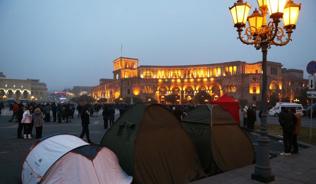 Support A1+!The oppositionists demanding the resignation of Prime Minister Nikol Pashinyan have set up tents in the Republic Square so that the protesters can spend the night there, ARF Dashnaktsutyun representative Ishkhan Saghatelyan stated.