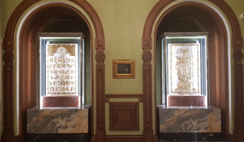 Հայրապետանոցի վերին հարկաբաժնում փառահեղորեն կանգնեցվել է նաև պատմական երկու բարձրարվեստ խաչքար (Նորավանք, 1308 թ.՝ գործ Մոմիկ վարդպետի, Արցախ, 1640 թ.):