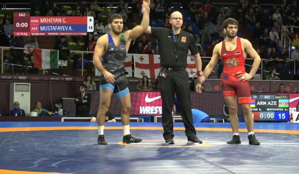 70 կգ քաշային Գևորգ Մխեյանը մրցեց ադրբեջանցի Աղահուսեյն Մուստաֆաևի հետ։ Մեր ըմբիշը հաջող սկսեց մարտը և առջևում էր 8։1 հաշվով, սակայն հետո տեղի տվեց և պարտություն կրեց՝ 8։15։