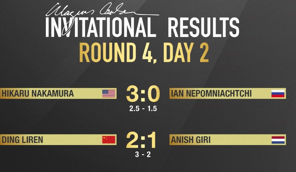 Magnus Carlsen Invitational. Հիկարու Նակամուրան հաղթում և մոտենում է Մագնուս Կառլսենին