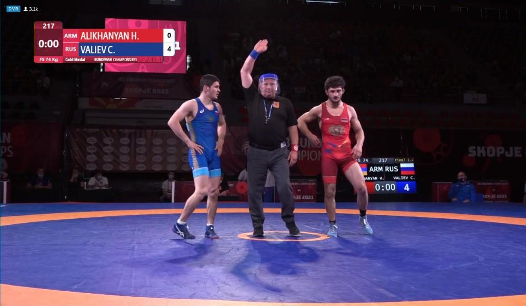 Նման ճակատագրի արժանացավ նաև 74 կգ քաշային Հրայր Ալիխանյանը, որը ոսկե մեդալի համար մրցամարտում զիջեց ռուսաստանցի Չերմեն Վալիևին` 0:4: