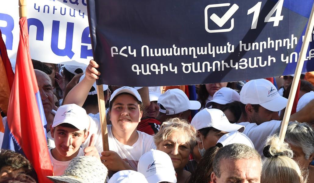 Առաջինը ելույթ ունեցավ ԲՀԿ պատգամավորի թեկնածու Իվետա Տոնոյանն ու նշեց, որ այս ընտրությունները հայրենիք ունենալ կամ չունենալու ընտրություններ են և բոլորը պետք է քվեարկեն հանուն բարգավաճ Հայաստան ունենալու գաղափարի: