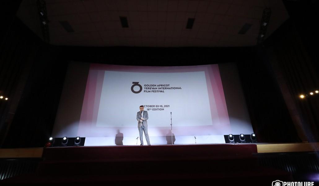 Երևանի «Ոսկե ծիրան» միջազգային կինոփառատոնի հիմնադիր տնօրեն Հարություն Խաչատրյանը շեշտեց՝ փառատոնը կայանում է բավականին բարդ ժամանակներում և շնորհակալություն հայտնեց այն իրականացնող երիտասարդ թիմին, ով չի վախենում դժվարություններից։ Խաչատրյանը բեմ հրավիրեց փառատոնի մյուս երկու համահիմնադիրներին՝ Սուսաննա Հարությունյանին և Միքայել Ստամբոլցյանին, և նրանք երեքով ազդարարեցին փառատոնի մեկնարկը։