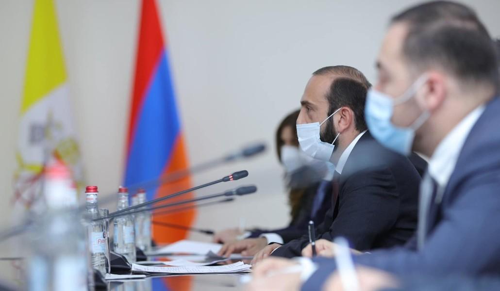 Աջակցիր «Ա1+»-ինՏեղի է ունեցել ՀՀ ԱԳ նախարար Արարատ Միրզոյանի և Սուրբ Աթոռի պետքարտուղարի ընդհանուր հարցերով փոխանորդ Էդգար Պենյա Պառայի ընդլայնված կազմով հանդիպումը։ Այս մասին տեղեկացնում է Արտաքին գործերի նախարարությունը։
