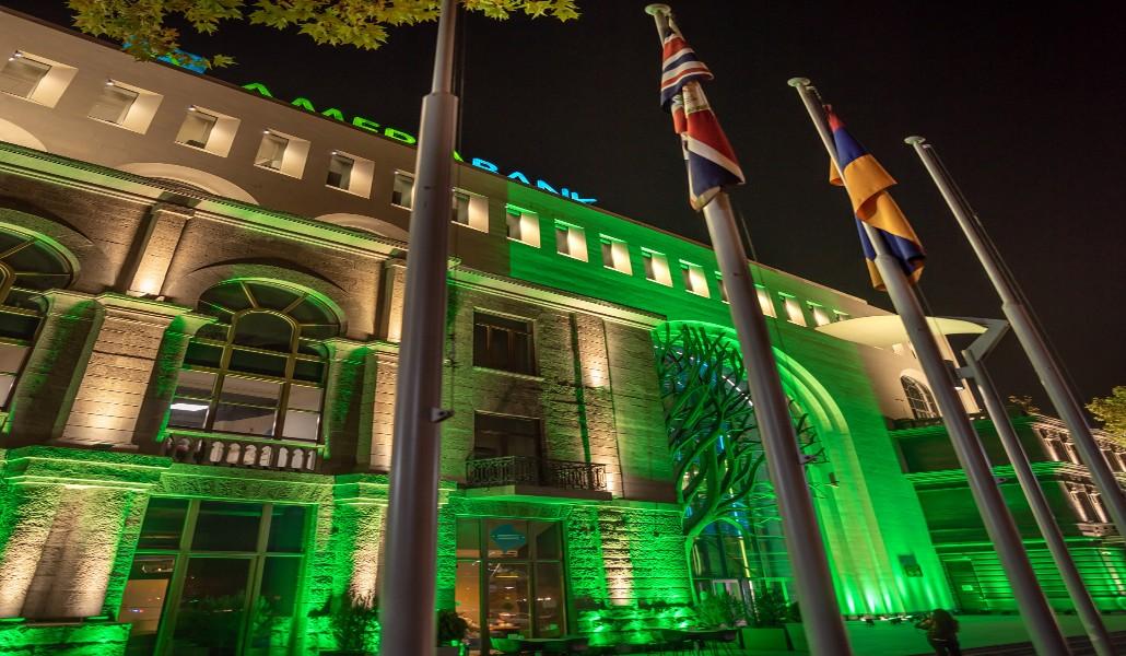 Բրիտանական դեսպանատան նախաձեռնությամբ «Կամար» կենտրոնի շենքը լուսավորվել է կանաչ գույնով՝ նշանավորելու համաժողովի ավարտը