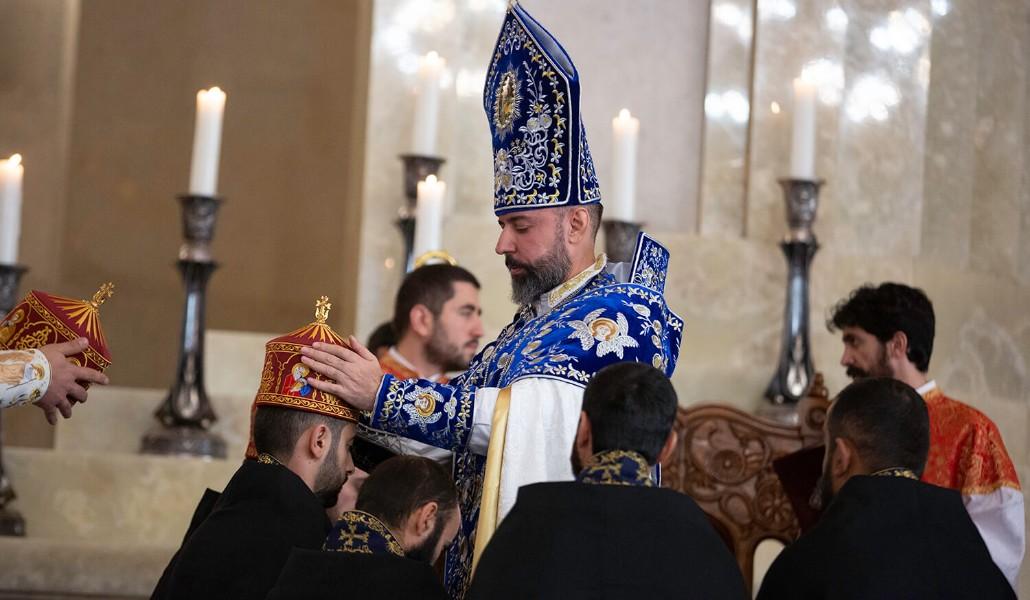 Պատարագի սրբազան արարողության ընթացքում Անուշավան Սրբազանը քահանայության կոչեց նորընծաներին` Սրբալույս Մյուռոնով օծելով քահանանների ճակատներն ու ձեռքերը և շնորհելով նրանց նոր հոգևոր անուններ: Իշխան սարկավագ Գևորգյանը վերակոչվեց Տ. Տրդատ քահանա, Ավետիք սարկավագ Նահապետյանը՝ Տ. Տիրան քահանա, Սասուն սարկավագ Աշուղբաբյանը՝ Տ. Ներսես քահանա, Վաչագան սարկավագ Դոխոլյանը՝ Տ. Հուսիկ քահանա, Հմայակ սարկավագ Կարապետյանը՝ Տ. Արամ քահանա, Տիգրան սարկավագ Սիմոնյանը՝ Տ. Արտավազդ քահանա, Նարեկ սարկավագ Հակոբյանը՝ Տ. Սեպուհ քահանա, Սևակ սարկավագ Հակոբյանը՝ Տ. Տիգրան քահանա, Գևորգ սարկավագ Գևորգյանը՝ Տ. Մաղաքիա քահանա, Արշակ սարկավագ Հակոբյանը՝ Տ. Արտաշես քահանա և Բենիկ սարկավագ Հովհաննիսյանը՝ Տ. Հովհան քահանա: