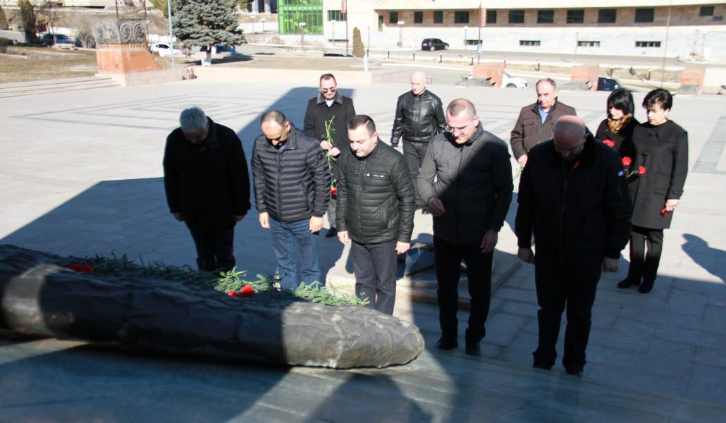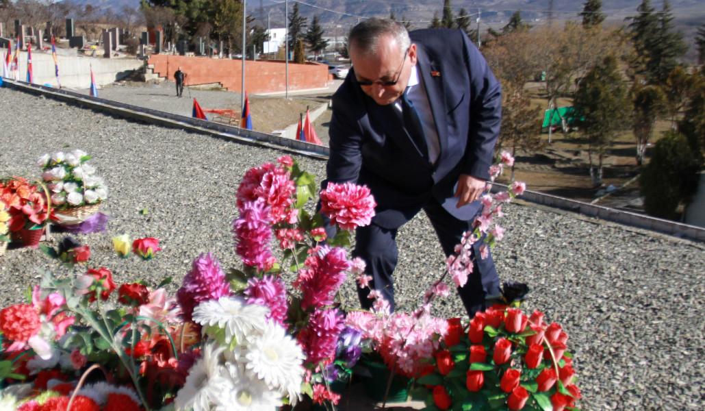 Այնուհետև հանձնաժողովի անդամները ծաղիկներ են խոնարհել և հարգանքի տուրք մատուցել քաղաքային հուշահամալիրի հարևանությամբ գտնվող արցախյան 3 պատերազմներում սրբագործված հայորդիների շիրիմներին։