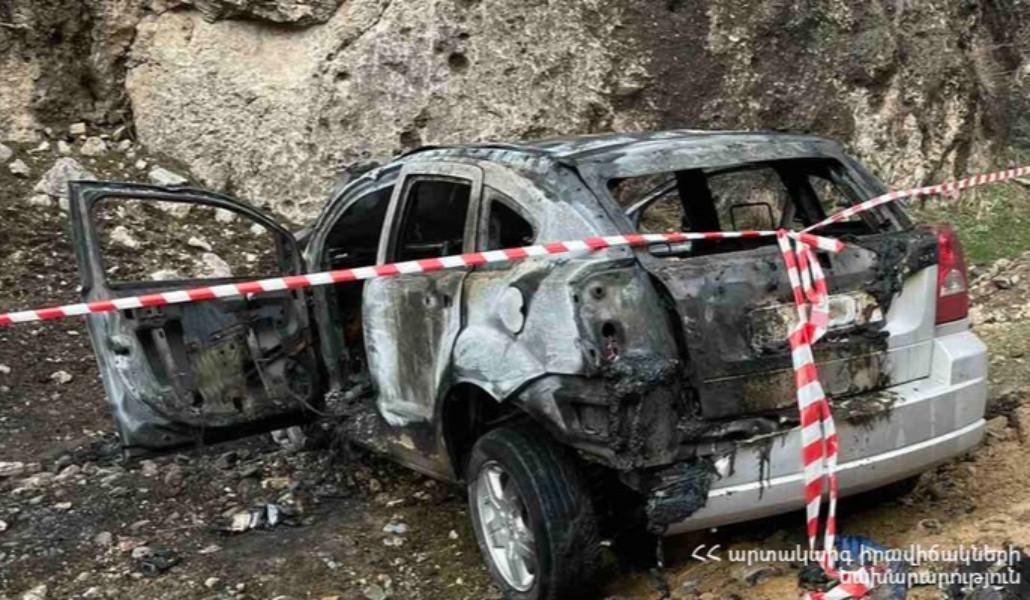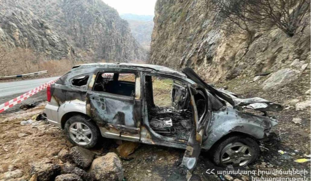 Մեքենան բախվել է ժայռին, գլխիվայր շրջվել և բռնկվել․ լուսանկարներ
