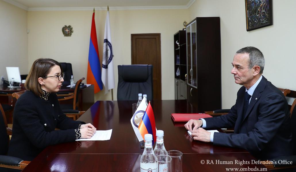 Իր հերթին Պաշտպանը պատվիրակության ղեկավարին է ներկայացրել նախորդ շաբաթ Արցախ կատարված այցի ընթացքում արձանագրած փաստերն ու հետևությունները: Պաշտպանը նշել է, որ հատկապես մտահոգիչ է համարում շփման գծին կամ ադրբեջանական հենակետերին մոտ տեղակայված գյուղերի բնակչության բնականոն կյանքը խաթարելուն միտված ադրբեջանական զինված ուժերի սադրանքները՝ վկայակոչելով Խրամորթում և Նորշենում տեղի ունեցած դեպքերը:
