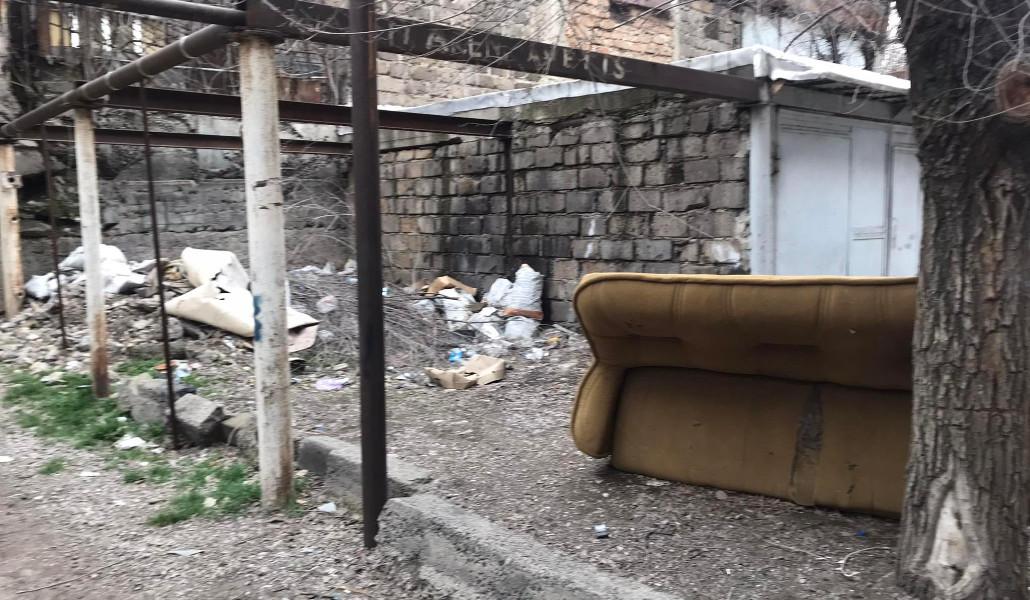 Անպետք լոգարան ու բազմոց՝ բնակելի շենքի բակում