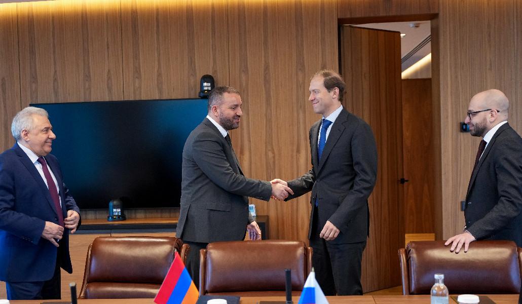 Աջակցիր «Ա1+»-ինՌուսաստանի Դաշնություն կատարած այցի շրջանակում ՀՀ էկոնոմիկայի նախարար Վահան Քերոբյանն ու նախարարի տեղակալ Նարեկ Տերյանը հանդիպել են ՌԴ արդյունաբերության և առևտրի նախարար Դենիս Մանտուրովի հետ։