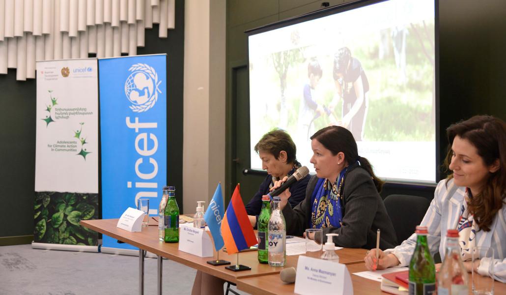 ՅՈՒՆԻՍԵՖ-ը Ավստրիական զարգացման գործակալության աջակցությամբ շարունակելու է աջակցել կրթության, գիտության, մշակույթի և սպորտի նախարարությանը, ինչպես նաև շրջակա միջավայրի, տարածքային կառավարման և ենթակառուցվածքների նախարարություններին և այլ գործընկերներին՝ կլիմայի փոփոխության մասին կրթությունն ազգային ուսումնական ծրագրում ներառելու, ուսուցիչների համար վերապատրաստման մոդուլներ մշակելու և նրանց կարողությունների զարգացմանն աջակցելու համար, ինչպես նաև դեռահասների համար հնարավորություններ և հարթակներ ստեղծելու, որպեսզի նրանց ձայնը լսելի դառնա, և նրանք հնարավորություն ունենան մասնակցելու համայնքային ծրագրերի իրականացմանը:
