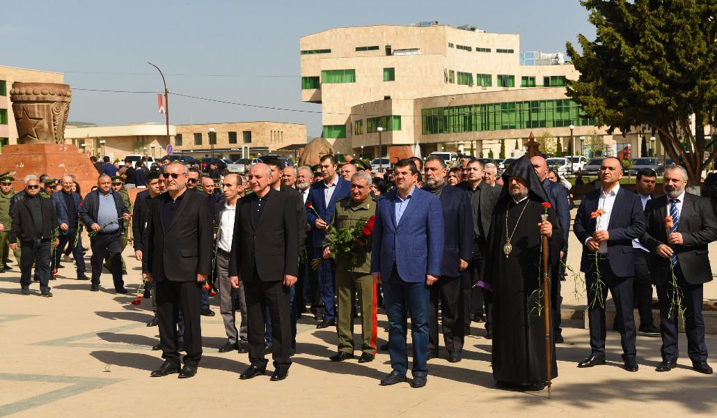 Աջակցիր «Ա1+»-ինԱրցախի Հանրապետության նախագահ Արայիկ Հարությունյանն ապրիլի 24-ին հանրապետության երրորդ նախագահ Բակո Սահակյանի, Հայ Առաքելական Եկեղեցու Արցախի թեմի առաջնորդ Տ. Վրթանես եպիսկոպոս Աբրահամյանի ու երկրի բարձրաստիճան ղեկավարության հետ այցելել է Ստեփանակերտի հուշահամալիր և ծաղիկներ դրել Մեծ Եղեռնի անմեղ զոհերի հիշատակը հավերժացնող հուշակոթողին: