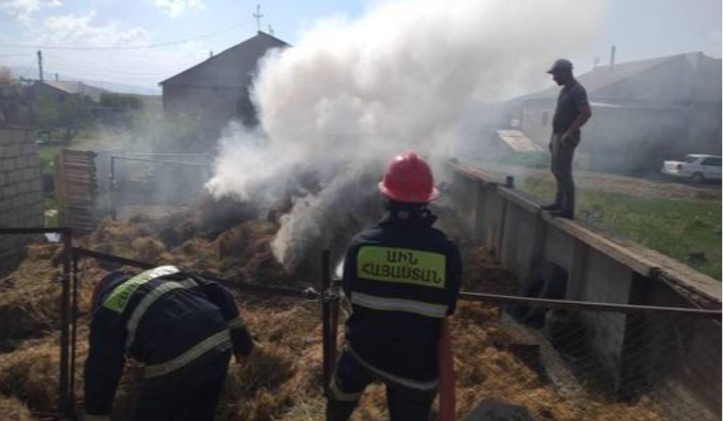 Պարզվել է, որ Սարակապ գյուղի 8-րդ փողոցի տներից մեկի բակում այրվում է կուտակած անասնակեր։