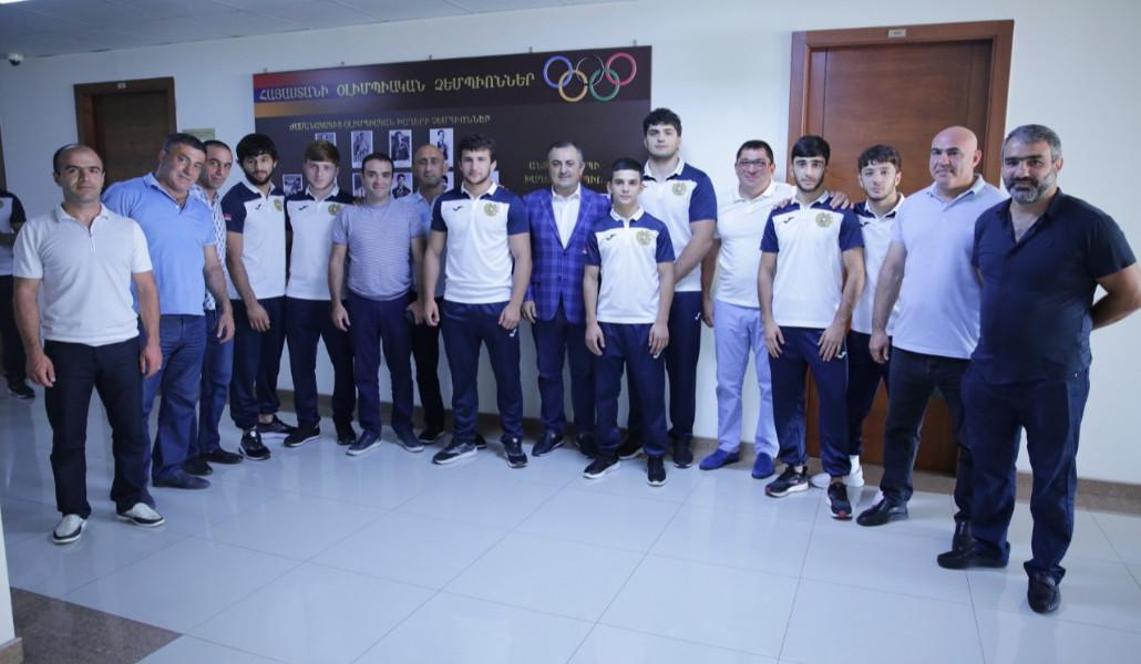 Հանդիպմանը ներկա են եղել Հայաստանի ըմբշամարտի ֆեդերացիայի նախագահ Ռոբերտ Խաչատրյանը, գլխավոր քարտուղար Արայիկ Բաղդադյանը, պատանեկան և երիտասարդական հավաքականների մարզիչներն ու մարզիկները: