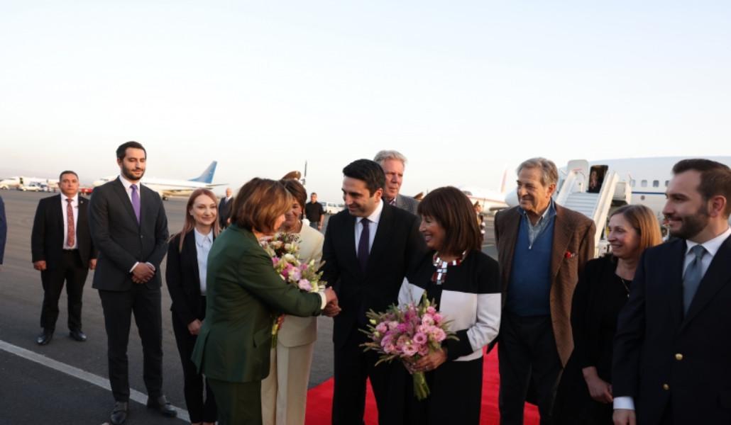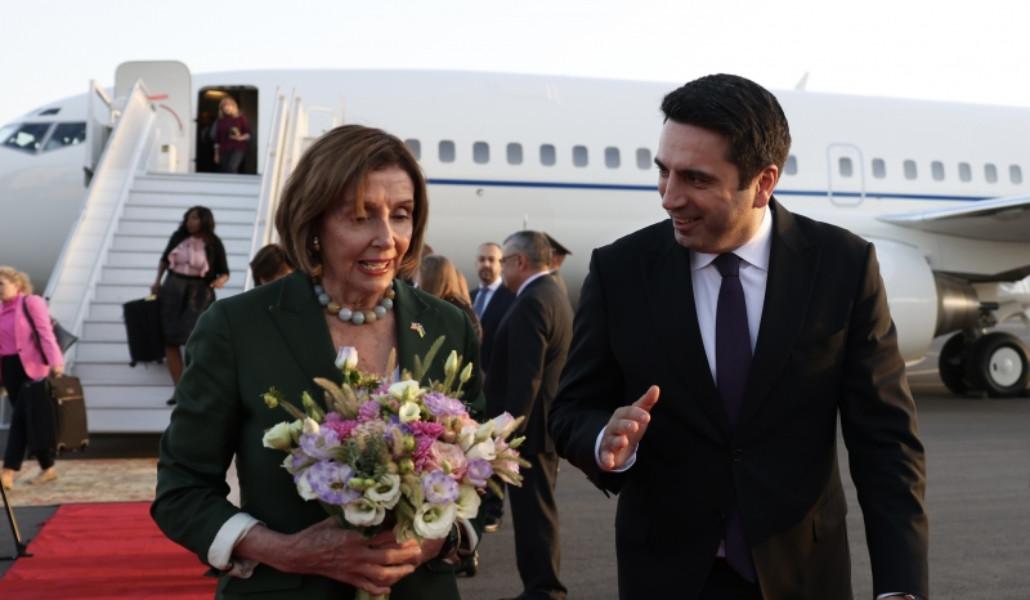ՀՀ ԱԺ նախագահ Ալեն Սիմոնյանը «Զվարթնոց» օդանավակայանում դիմավորել եւ առանձնազրույց է ունեցել Նենսի Փելոսիի հետ՝ հայտնում են ԱԺ-ից: