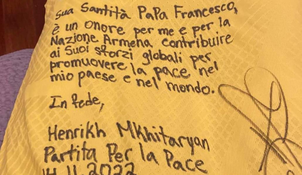 Հիշեցնենք, որ Հայաստանի ֆուտբոլի հավաքականի նախկին ավագ Հենրիխ Մխիթարյանն մասնակցել է Հռոմի «Օլիմպիկո» մարզադաշտում կազմակերպված բարեգործական հանդիպմանը, որը կրել է «Խաղաղության խաղ» անվանումը: Հանդիպումը կազմակերպել է Վատիկանը՝ Հռոմի քահանայապետ Ֆրանցիսկոսի գլխավորությամբ: