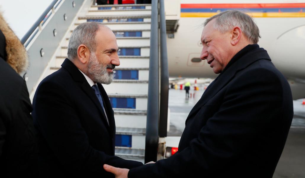 Սանկտ Պետերբուրգի Պուլկովո միջազգային օդանավակայանում վարչապետին դիմավորել է Լենինգրադի նահանգապետ Ալեքսանդր Դրոզդենկոն: