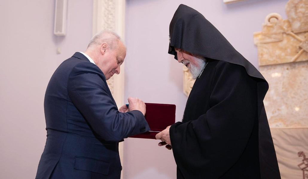 Ռուսաստանի Դաշնության այս բարձր պարգևի շնորհումը դիտարկելով հայ-ռուսական բարեկամության, Հայաստանի և Ռուսաստանի միջև հոգևոր-մշակութային կապերի զորացման գործում Հայոց Եկեղեցու պատմական դերակատարության արժևորում և գնահատանք Ռուսաստանի կյանքում հայ համայնքի կարևոր ավանդի` Նորին Սրբությունը հաստատեց, որ երկու ժողովուրդների բարեկամության ակունքներում կանգնած Հայաստանյայց Առաքելական և Ռուս Ուղղափառ Եկեղեցիներն իրենց Հովվապետերի առաջնորդությամբ ամենայն ջանք ի գործ են դնելու հանուն այս դարավոր բարեկամության առավել ամրապնդման և հարատևության։