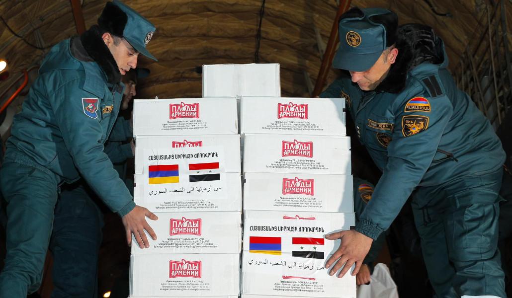 Մարդասիրական բեռը ներառել է սնունդ, դեղորայք և բժշկական սարքավորումներ: Այն Սիրիա է ուղարկվելու Երևանի «Էրեբունի» օդանավակայանից: