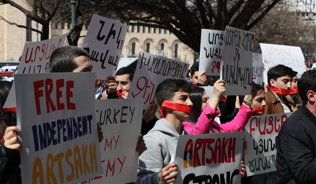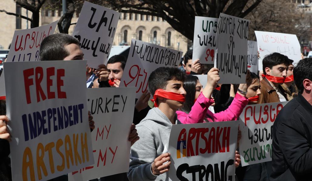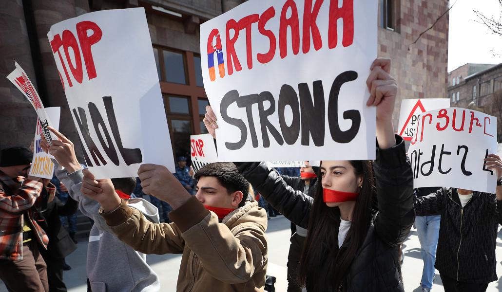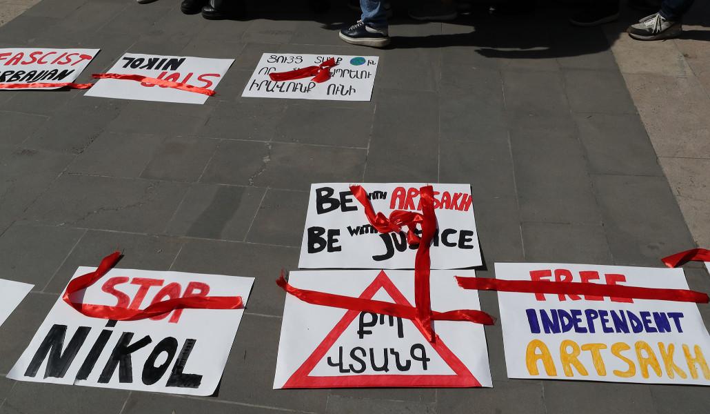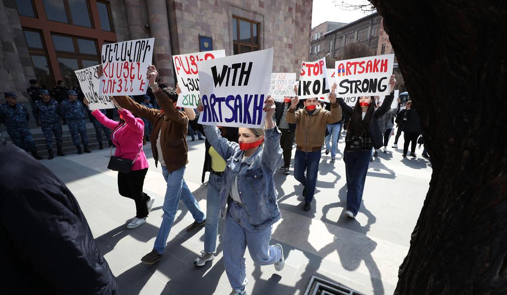 Մասնակիցներն այստեղ եկել են «Բացեք կյանքի ճանապարհը, «Արցախն ուժեղ է», «Ազատ և ուժեղ Արցախ», «Կանգ առ, Նիկոլ» ու այլ գրություններով պաստառներով։ Նրանք կարմիր ժապավեններով կապել են իրենց բերանները։