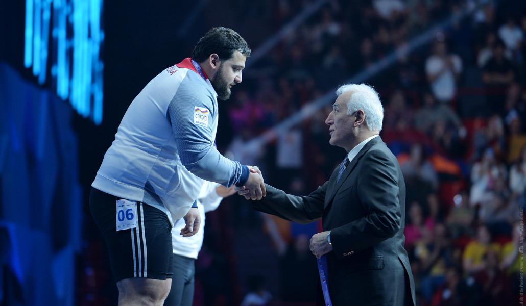 Մարզիկների մրցելույթների ավարտին Վահագն Խաչատուրյանը պարգևատրել է Եվրոպայի չեմպիոն՝ Վրաստանը ներկայացնող Լաշա Տալախաձեին և Հայաստանը ներկայացնող մեդալակիրներ Վարազդատ Լալայանին և Սիմոն Մարտիրոսյանին: