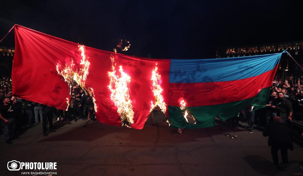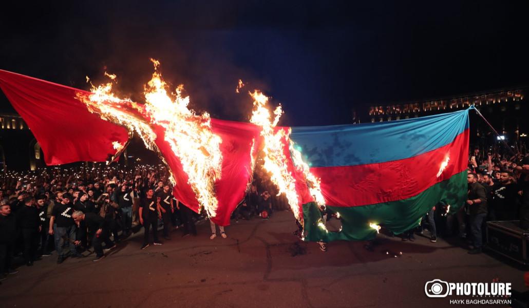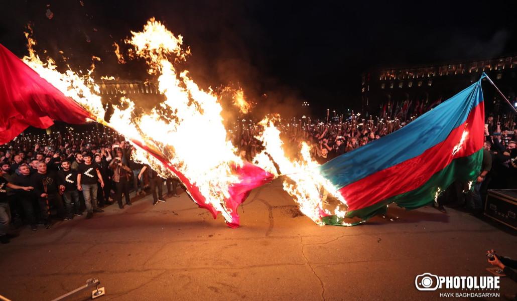 Հրապարակում այրեցին Թուրքիայի ու Ադրբեջանի դրոշները (լուսանկարներ) (տեսանյութ)