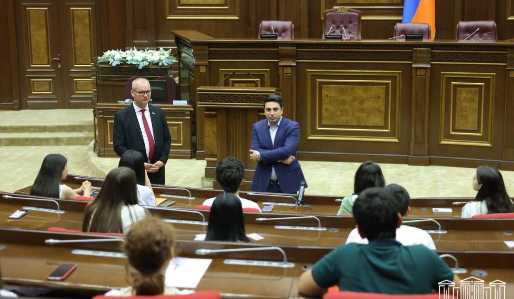 ՀՀ ԱԺ նախագահ Ալեն Սիմոնյանը հանդիպել է «Հիշատակի գնացք» մշակութային-կրթական նախագծի աշակերտներին