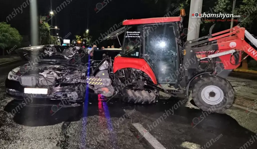 Աջակցիր «Ա1+»-ինԱյսօր՝ հուլիսի 11-ին, խոշոր ավտովթար է տեղի ունեցել Երևանում։ Ժամը 01։30-ի սահմաններում Իսակովի պողոտայում, ԱՄՆ դեսպանատան հարևանությամբ Երևանի բնակիչ 38-ամյա Գևորգ Բաղդասարյանը իր վարած BMW մակնիշի ավտոմեքենայով բախվել է ճանապարհի մաքրման աշխատանքներ կատարող, Արարատի մարզի բնակիչ 35-ամյա Գևորգ Դանիելյանին վարած տրակտորին։