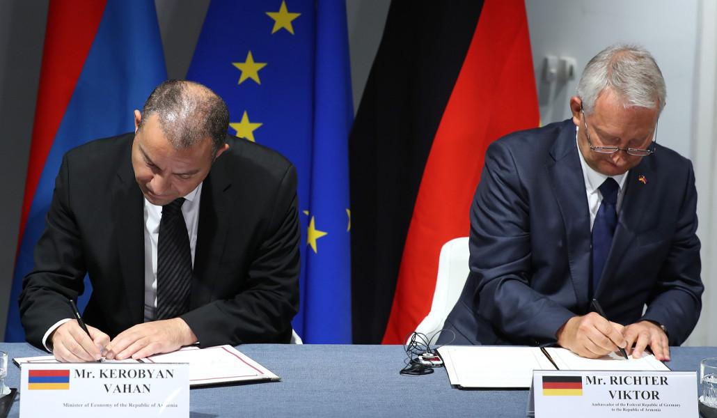 Հայկական կողմից համաձայնագիրը ստորագրեց ՀՀ էկոնոմիկայի նախարար Վահան Քերոբյանը, իսկ գերմանական կողմից՝ Գերմանիայի Դաշնային Հանրապետության արտակարգ և լիազոր դեսպան Վիկտոր Ռիխտերը։