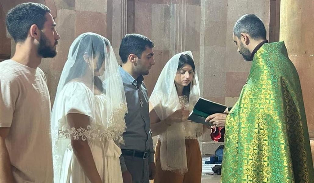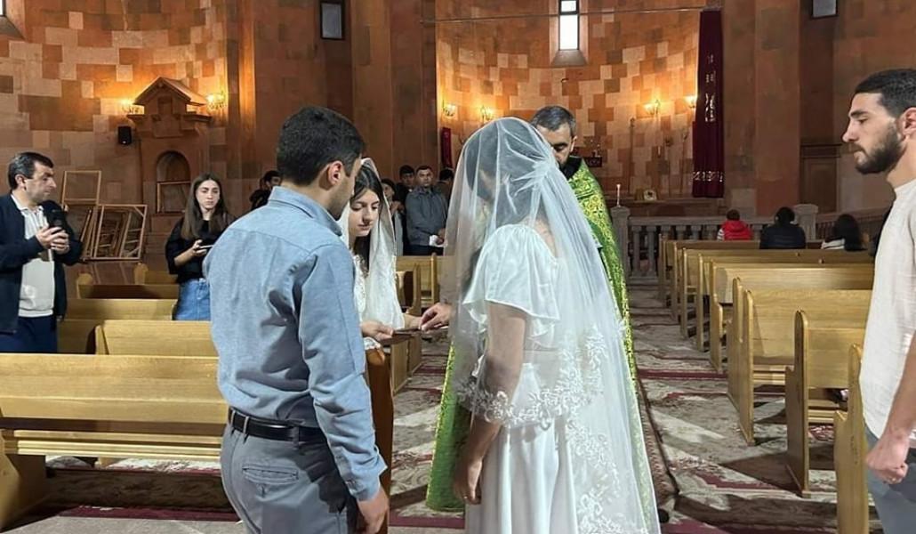 Ստեփանակերտի Սուրբ Աստվածամոր հովանու Մայր Տաճարում տեղի է ունեցել պսակադրություն։ Զույգը ցանկացել է գոնե ընտանիքը ստեղծել Արցախում։