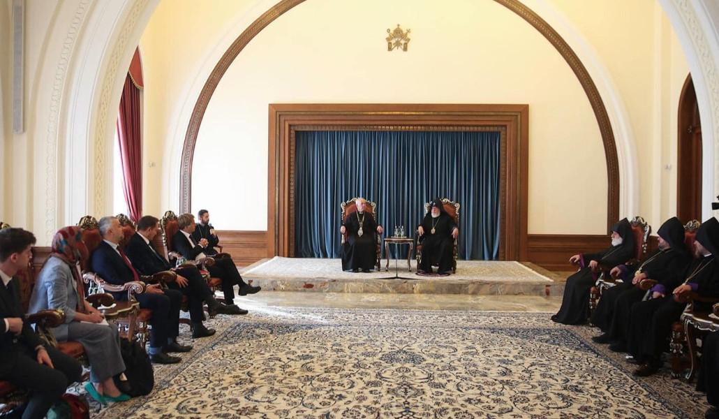 Հանդիպմանը Հայոց Հովվապետն անդրադարձավ Արցախից բռնի տեղահանված հայորդիների առջև ծառացած մարտահրավերներին, գերիների վերադարձման, Արցախի հոգևոր մշակութային ժառանգության պահպանման և Հայաստանի անվտանգային խնդիրներին։ Նորին Սրբությունը մտահոգությամբ ընդգծեց նաև, որ այսօր էլ շարունակվում է ադրբեջանական ագրեսիան Հայաստանի ինքնիշխան տարածքների նկատմամբ։