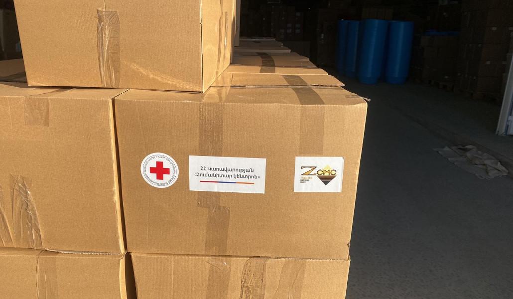Զանգեզուրի պղնձամոլիբդենային կոմբինատ փակ բաժնետիրական ընկերությունը (ՓԲԸ)՝ ՀՀ Կառավարության «Հումանիտար կենտրոնի» հետ համատեղ, տեղահանված անձանց սնունդով և հիգիենիկ պարագաներով աջակցելու նպատակով Հայկական Կարմիր խաչի ընկերությանն (ՀԿԽԸ) է փոխանցել 62 600 000 ՀՀ դրամ։