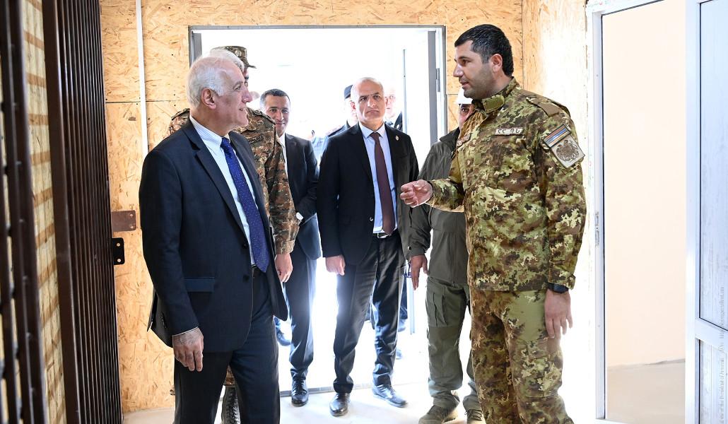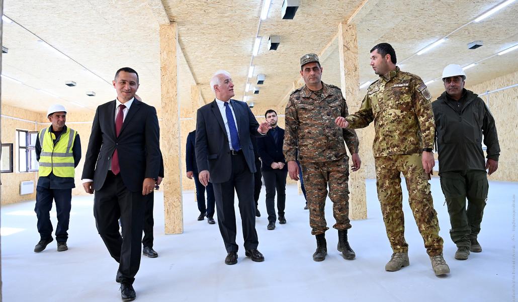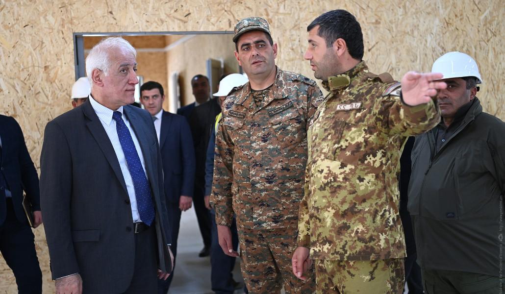 Նախագահը ծանոթացել է ընթացող աշխատանքներին և զրուցել շինարարների, ինչպես նաև զինվորական ղեկավարության հետ, և հետաքրքրվել նոր տիպի զորամասերի կառուցման ընթացքից։