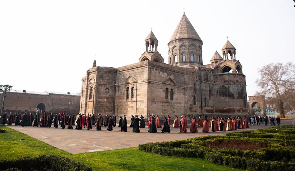 Աջակցիր «Ա1+»-ինԴեկտեմբերի 16-ին Ն.Ս.Օ.Տ.Տ. Գարեգին Երկրորդ Ծայրագույն Պատրիարք և Ամենայն Հայոց Կաթողիկոսի գլխավորությամբ հոգևորականաց թափորը շարականների երգեցողության ներքո Մայր Աթոռ Սուրբ Էջմիածնի Սրբոց Հրեշտակապետաց եկեղեցի բերեց Սուրբ Ներսես Շնորհալի Հայրապետի մասունքակիր խաչը` հավատացյալների հոգևոր մխիթարության և երկրպագության համար։