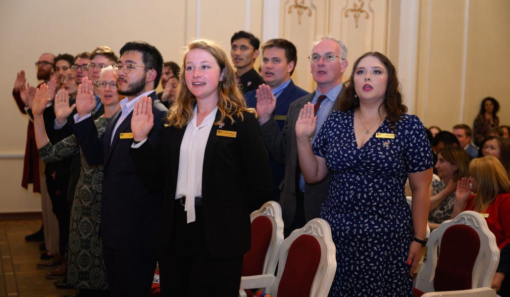 Երդման կարգը վարեցին դեսպան Քվինը և Խաղաղության կորպուսի կենտրոնական գրասենյակի տնօրեն Քերոլ Սպանը։