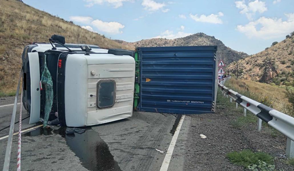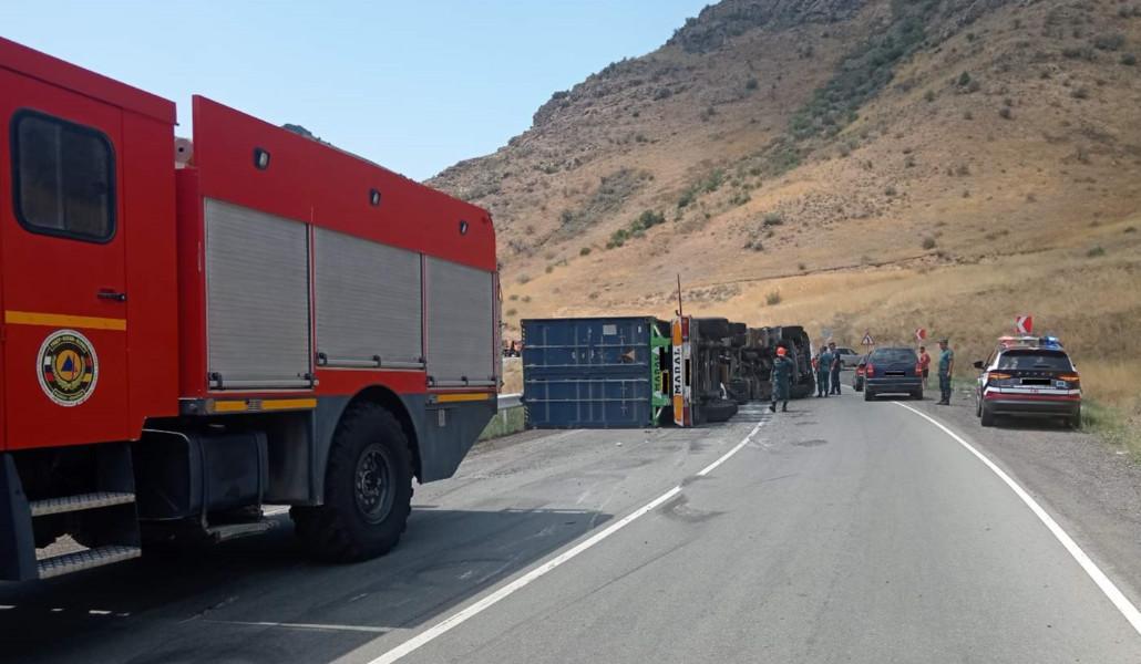 Պարզվել է, որ Մ-2 ավտոճանապարհի Երևան-Մեղրի հատվածի 143-րդ կմ-ին «Mercedes-Benz» մակնիշի կցորդիչով բեռնատարը (վարորդ՝ Հ․ Հ․, ծնված 1964 թ․) կողաշրջվել է, առկա է դիզելային վառելիքի արտահոսք. ճանապարհը դարձել է միակողմանի երթևեկելի։