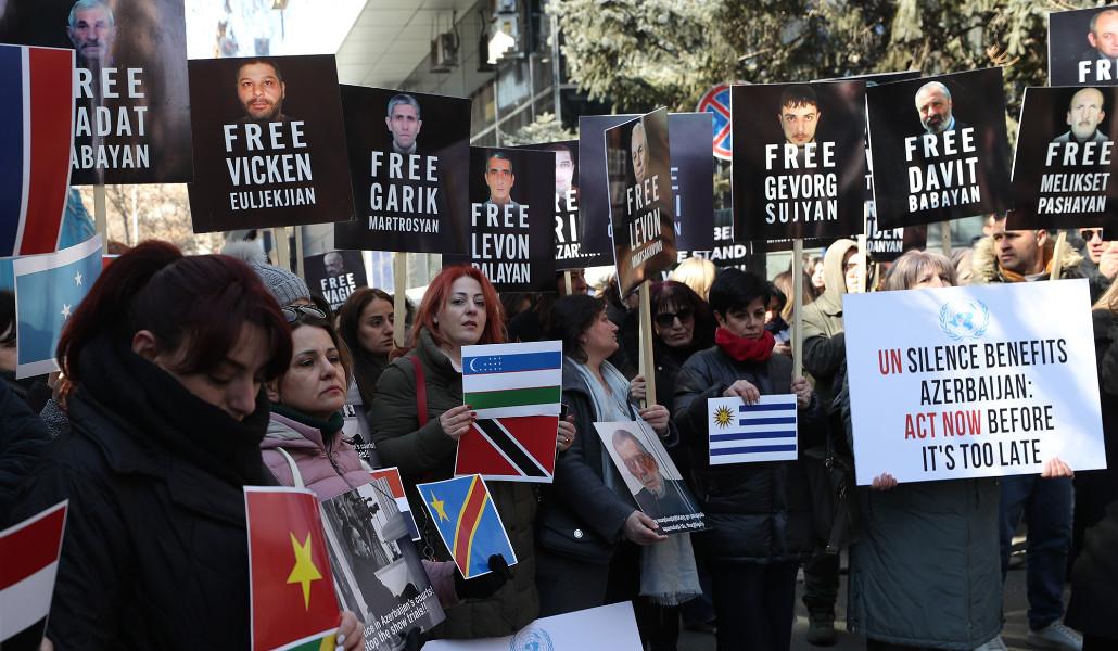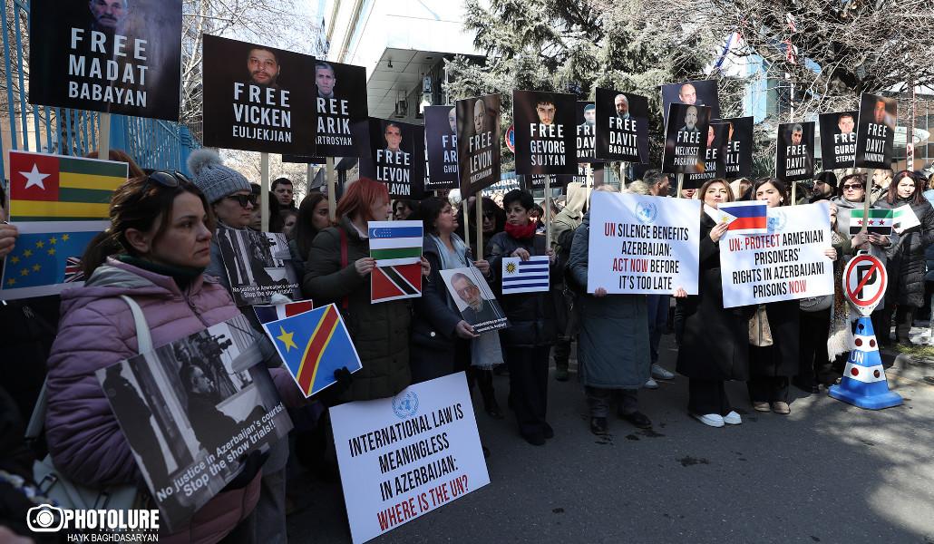 Բաքվի հայ բանտարկյալներին աջակցելու համար բողոքի ակցիա է տեղի ունեցել ՄԱԿ-ի հայաստանյան գրասենյակի դիմաց