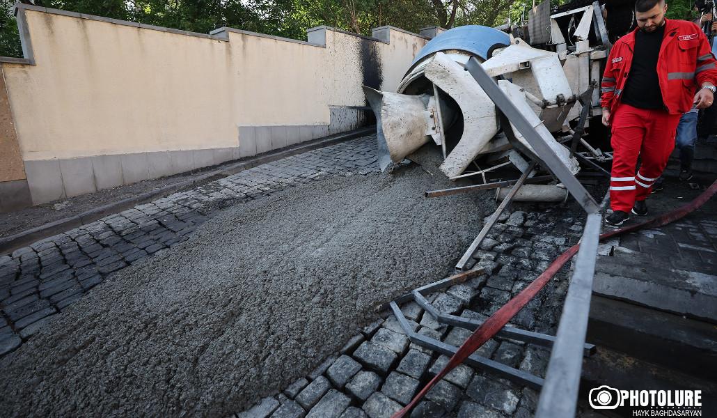 Դեպքի վայր են մեկնել հրշեջ-փրկարարներ՝ 4 մարտական հաշվարկ։ Տեղում պարզվել է, որ այրվում է 4 տրանսպորտային միջոցներ, որոնցից 3-ը՝ մարդատար, իսկ 1-ը՝ բետոնախառնիչ։ Նախնական տվյալներով տուժածներ չկան։ Հրդեհը մեկուսացվել է 16։50-ին, մարվել՝ 17։08-ին։