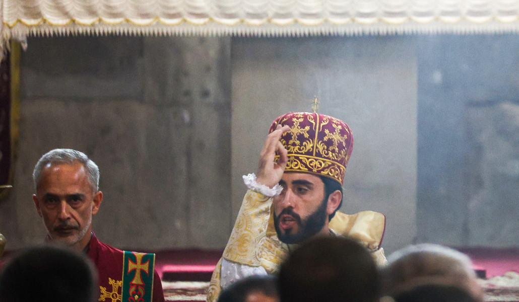 Պատարագը մատուցում է Մայր աթոռի կողմից կարգալույծ արված Տեր Արամը։