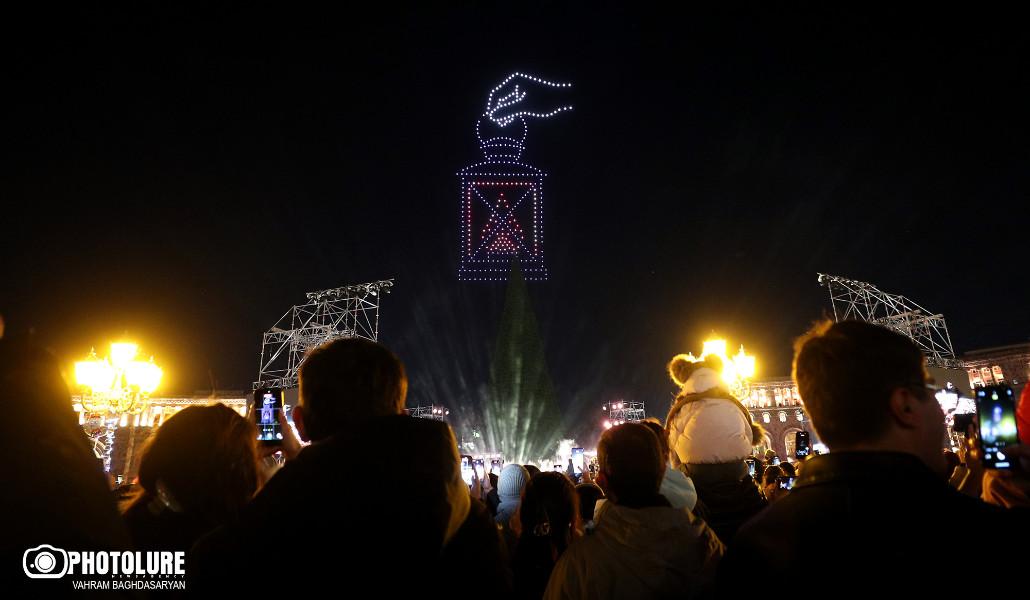 Վառվեցին Երևանի գլխավոր տոնածառի լույսերը (տեսանյութ)