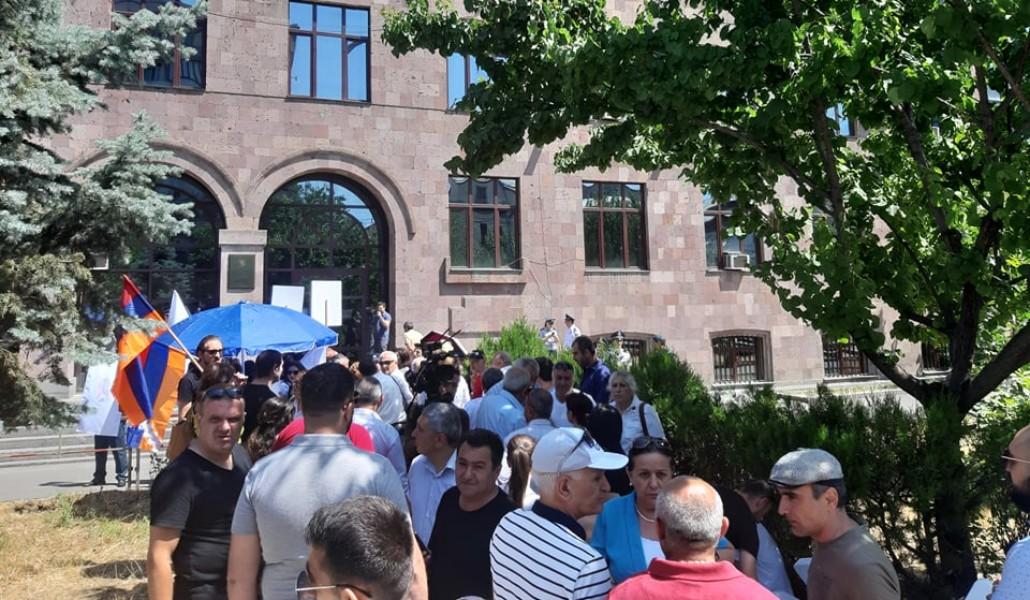 В настоящий момент во дворе суда уже многолюдно. Здесь находятся сторонники Роберта Кочаряна.