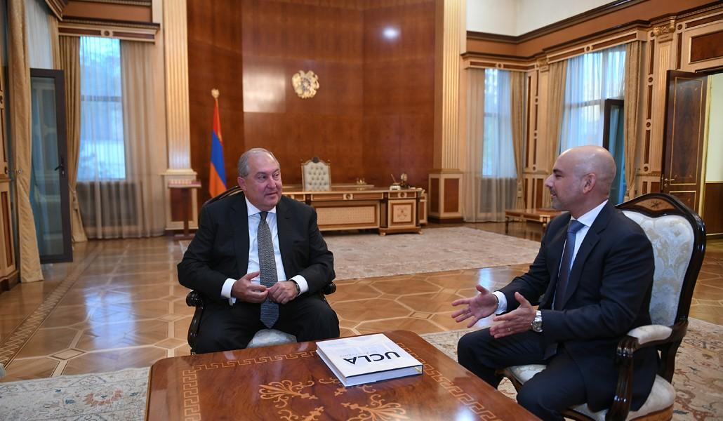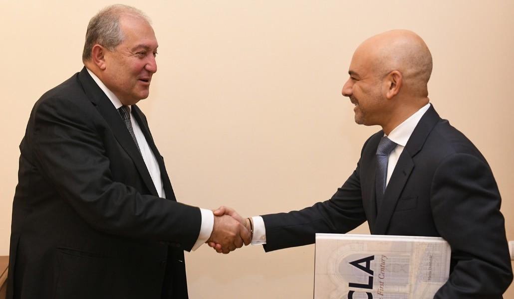 Поддержи А1+!Президент Армении Армен Саркисян 8 октября принял известного американо-армянского доктора, соруководителя Медицинского колледжа им. Дэвида Гефена в Калифорнийском университете Лос-Анджелеса, продюсера голливудского фильма «Обещание» о Геноциде армян, члена Совета директоров Всеобщего армянского благотворительного союза, доктора Эрика Эсраиляна.