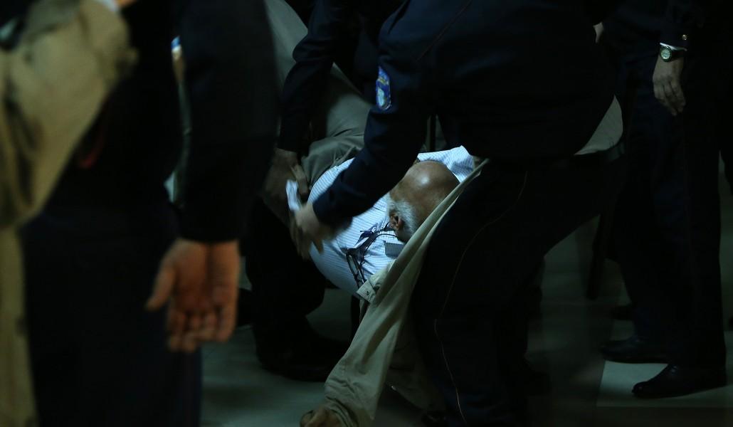 Сотрудники безопасности суда, однако, вынесли его в лежачем состоянии, после чего Гаспари лег в коридоре.