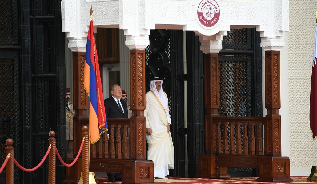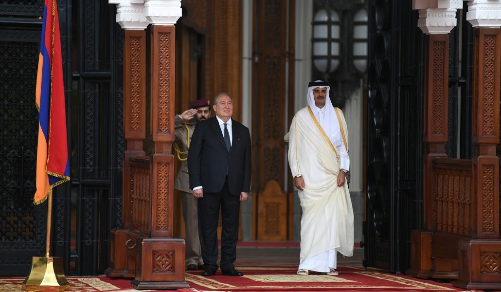 Президент Армении и эмир Катара приветствовали членов официальных делегаций обеих стран.