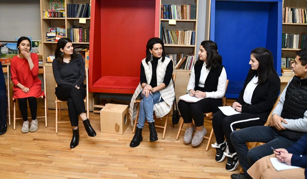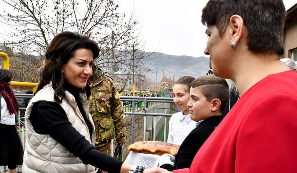 Поддержи А1+!Супруга премьер-министра РА, председатель Совета попечителей благотворительных Фондов “Мой шаг” и “City of smile / Город улыбок” Анна Акопян 28 октября посетила приграничную общину Мовсес Тавушской области. В сопровождении директора средней школы общины Мовсес Рузанны Адамян, иерея Абеля Карташяна, руководителя общины Артака Папяна, директора-учредителя организации ”Teach For Armenia” Ларисы Ованнисян Анна Акопян посетила среднюю школу общины. Станцевала традиционный армянский танец, поучаствовала в школьных играх, на курсах рисования и гончарного дела. Анна Акопян присутствовала также и на обсуждении литературного клуба школы “Зартир”, на котором члены клуба выступили в качестве юных журналистов и задали вопросы супруге премьер-министра.