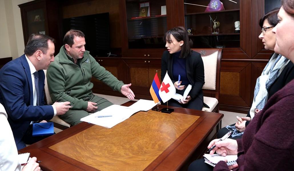 Председатель комиссии по вопросам пленных, заложников и без вести пропавших, министр обороны Армении Давид Тоноян 10 декабря принял делегацию Международного комитета Красного креста (МККК) в Армении во главе с Клер Мейтро.