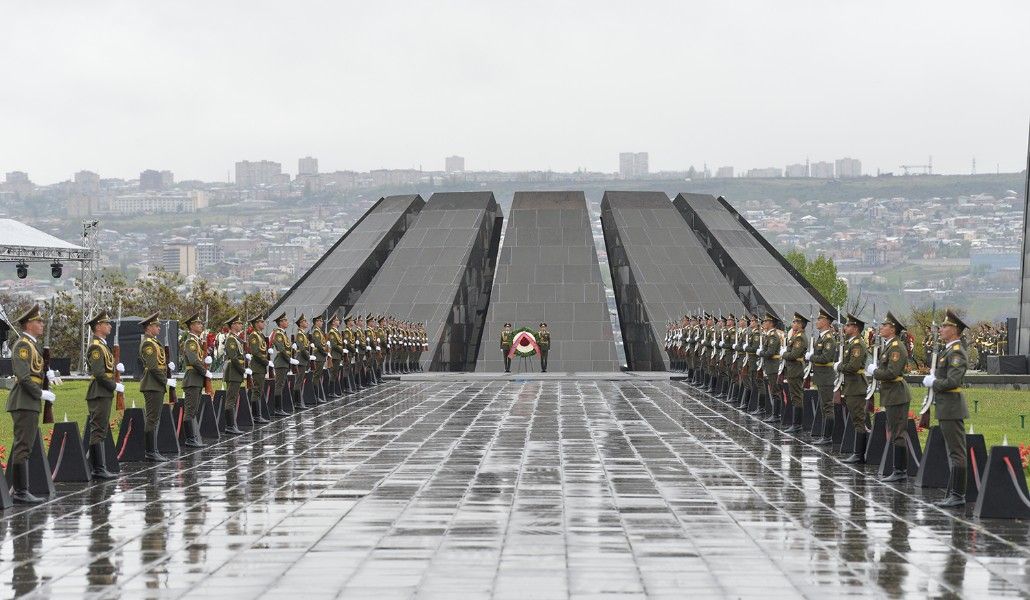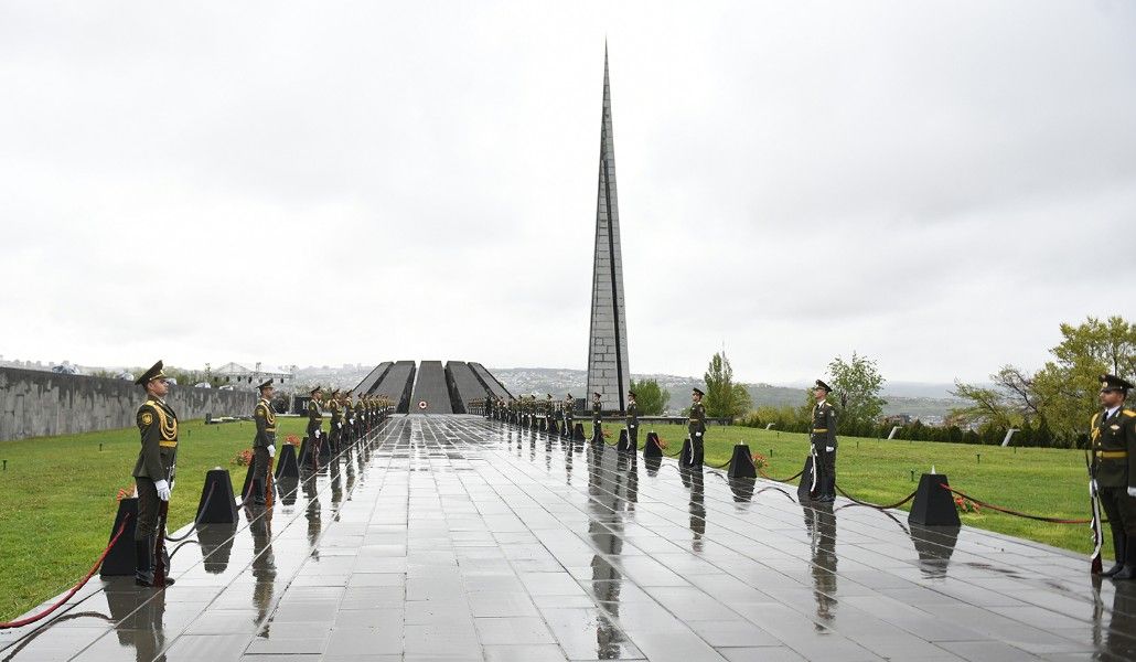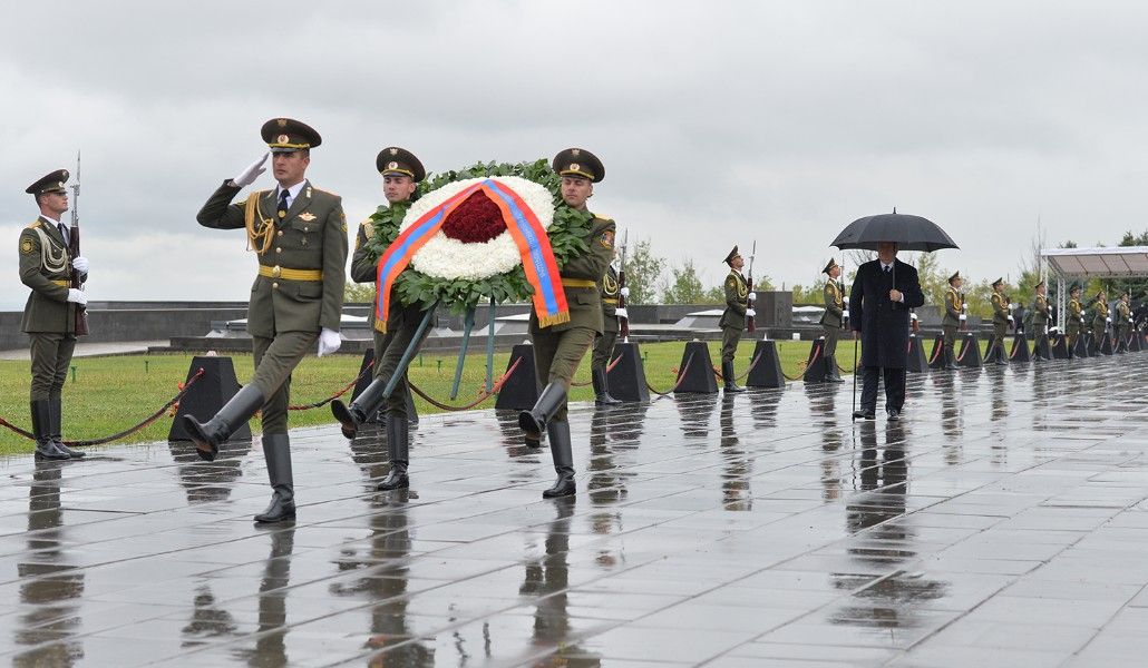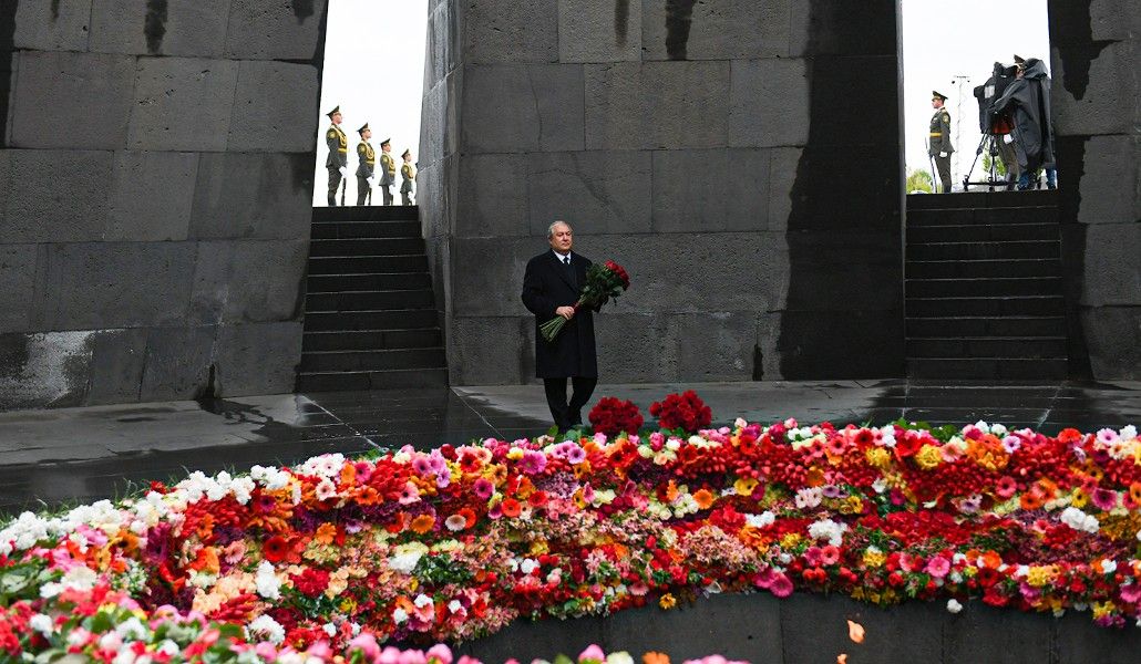 От имени президента Республики Армения к Мемориалу жертв Геноцида армян был возложен венок. Президент возложил цветы к Вечному огню, увековечивающему память невинных жертв, и минутой молчания почтил их память.