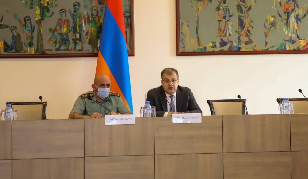 Артак Апитонян подробно представил ситуацию, сложившуюся в результате вторжения азербайджанских вооруженных формирований в суверенную территорию Республики Армения, в Сюникскую и Гегаркуникскую области, а также шаги, предпринятые для ее разрешения.